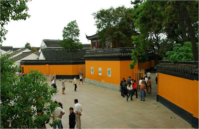 「寒山寺」位於蘇州城西的楓橋鎮,創建於梁代天監年間,迄今已有一千四百多年歷史,初名「妙利普明寺」,相傳唐貞觀年間,高僧「寒山」和「拾得」自天台山國清寺來此住持,遂改名「寒山寺」。唐朝詩人「張繼」當年搭船途經此處時,因滿懷旅愁,觸景生情寫了下《楓橋夜泊》詩:「月落烏啼霜滿天,江楓漁火對愁眠,姑蘇城外寒山寺,夜半鐘聲到客船。」從此,詩韻鐘聲千載流傳,讓蘇州寒山古剎名揚中外。